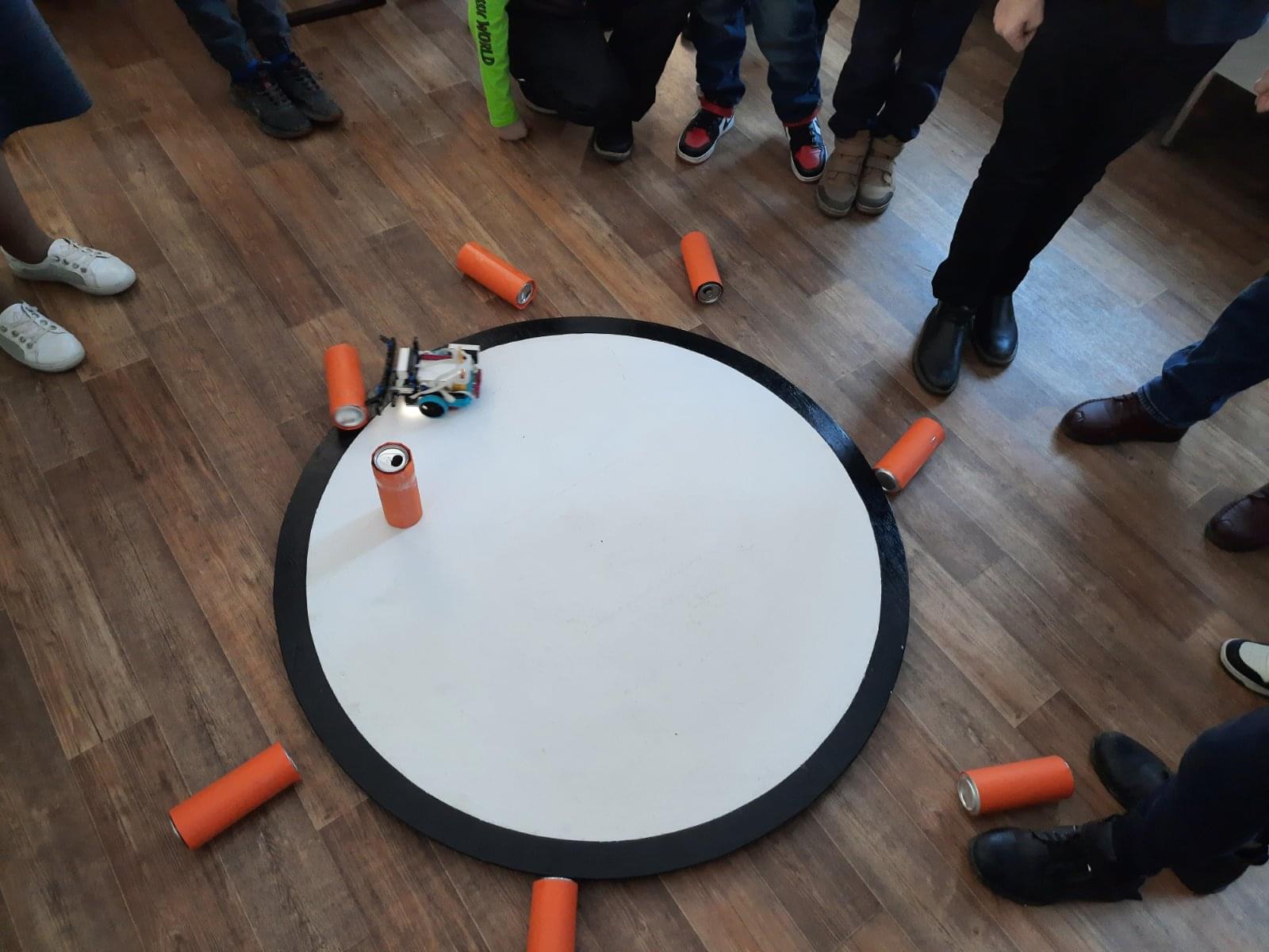 - Кегельринг для начинающих, задача робота — за наиболее короткое время вытолкнуть все кегли за пределы ринга, который представляет собой белый круг, ограниченный черной линией, на ринге расположено 8 кеглей.