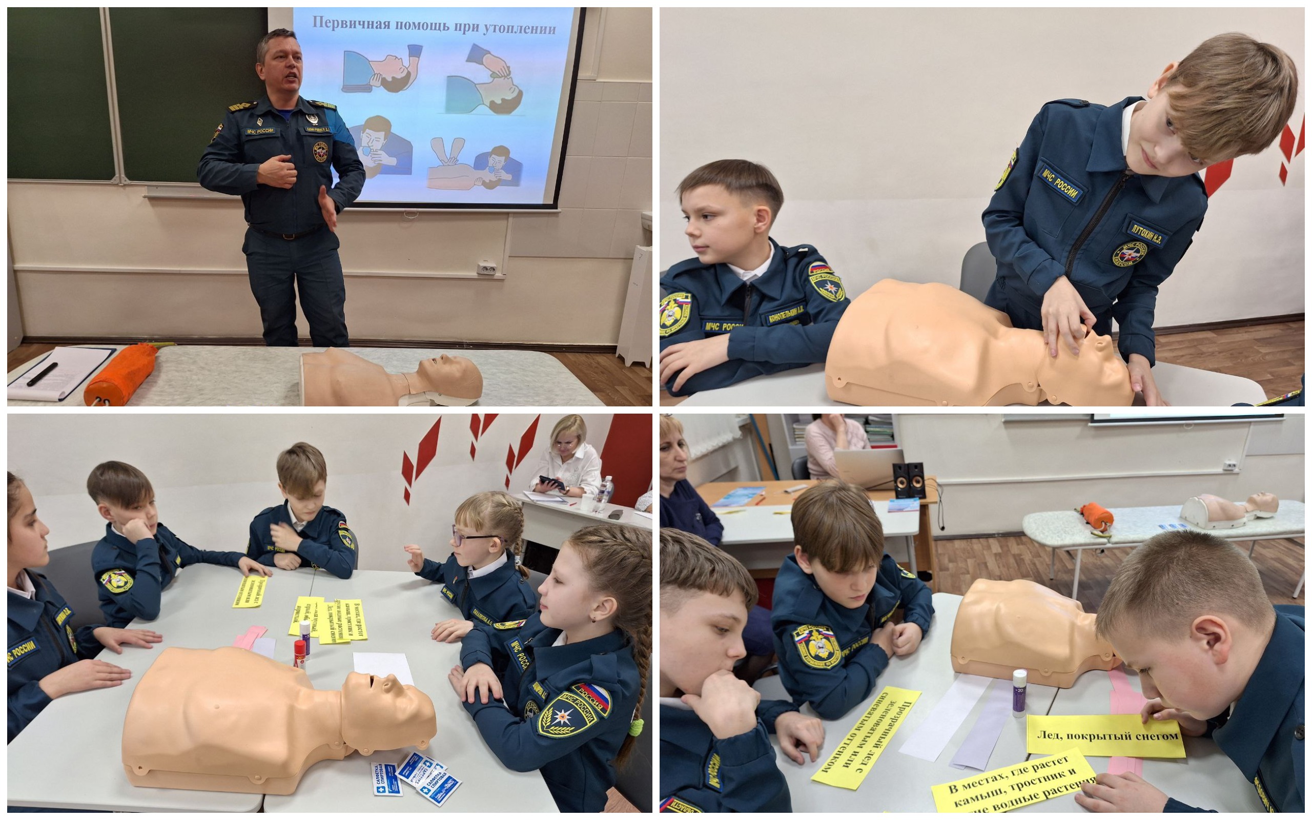 Сомеройнен Дмитрий Георгиевич, педагог дополнительного образования МКОУ ШР «СОШ №6», вместе с обучающимися 4 класса отработал навыки оказания первой помощи при несчастных случаях на водных объектах. Ребята уверенно отвечали на вопросы: «Какие бывают виды льда», «Какие действия необходимо предпринять, если человек провалился под лёд», «Как правильно проводить реанимацию человека». В завершение занятия ребята изготовили поздравительный плакат с 23 февраля для сотрудников МЧС.
